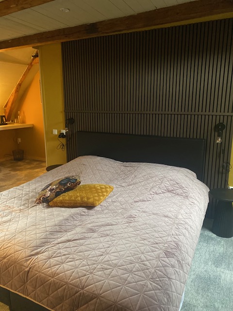 In deze kamer voel je je meteen thuis. Het comfortabele tweepersoonsbed zorgt voor een fijne nachtrust, en met dimbare verlichting bepaal je zelf de sfeer. Er is wifi voor al je online activiteiten en een bistrotafel met stoelen voor een rustig moment. Geniet van een kopje koffie of thee met de aanwezige faciliteiten.